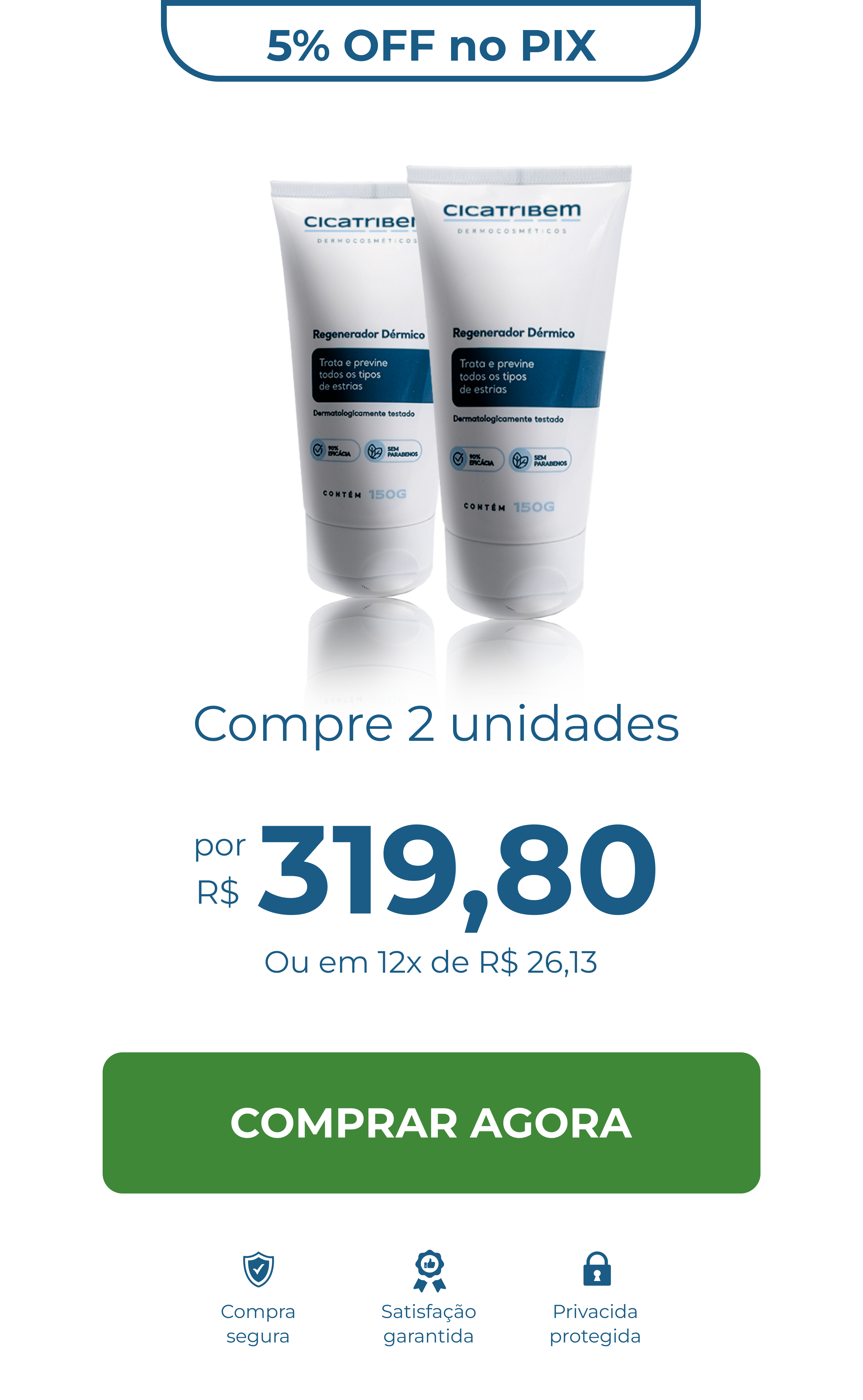 Sim! Cicatribem tem teste de eficácia com 96% de aprovação. Sua fórmula patenteada foi desenvolvida para combater a ruptura das fibras elásticas da camada intermediária de todo tipo de pele, amenizar a aparência das marcas brancas, roxas e vermelhas.